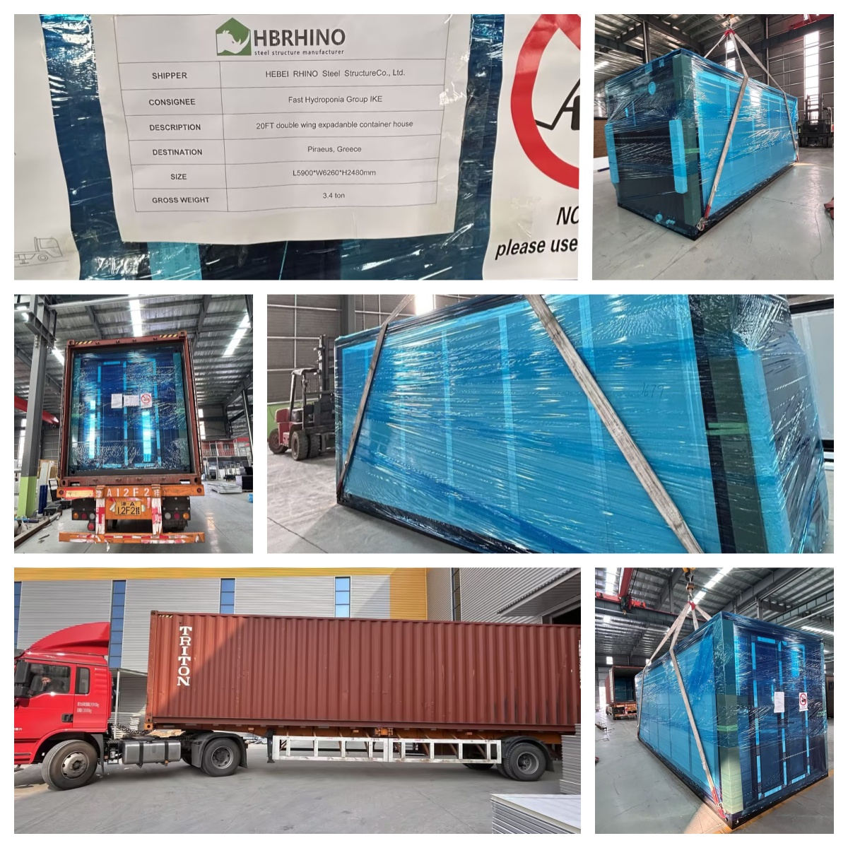 နေအိမ် > အမှုတွဲများ > New orders in October, 2 sets of 20ft twin wing expansion houses transported to Piraeus Port in Greece